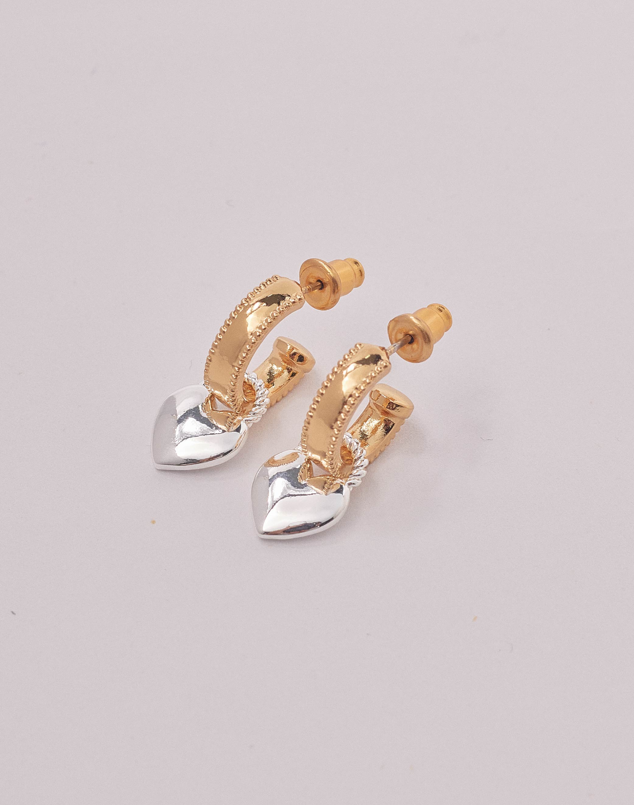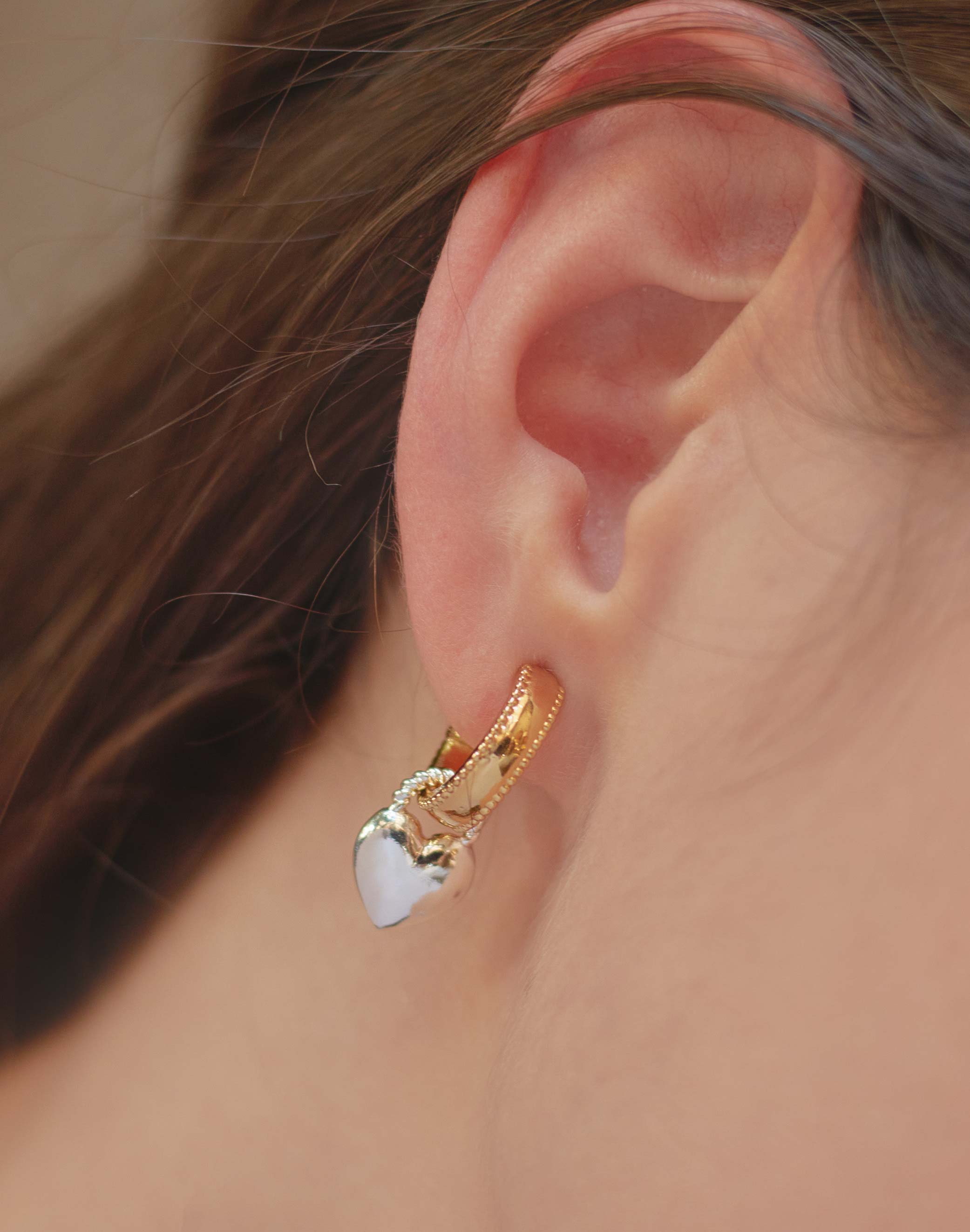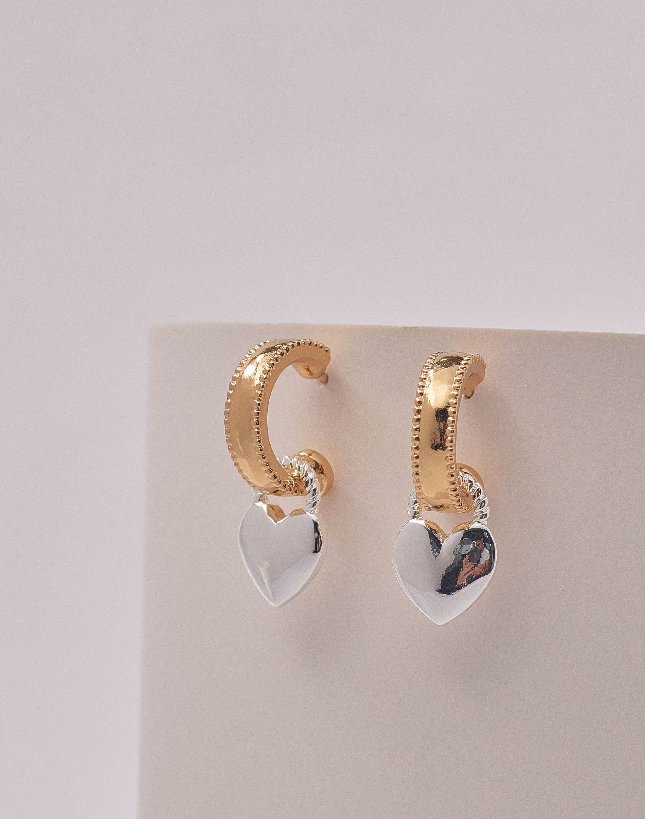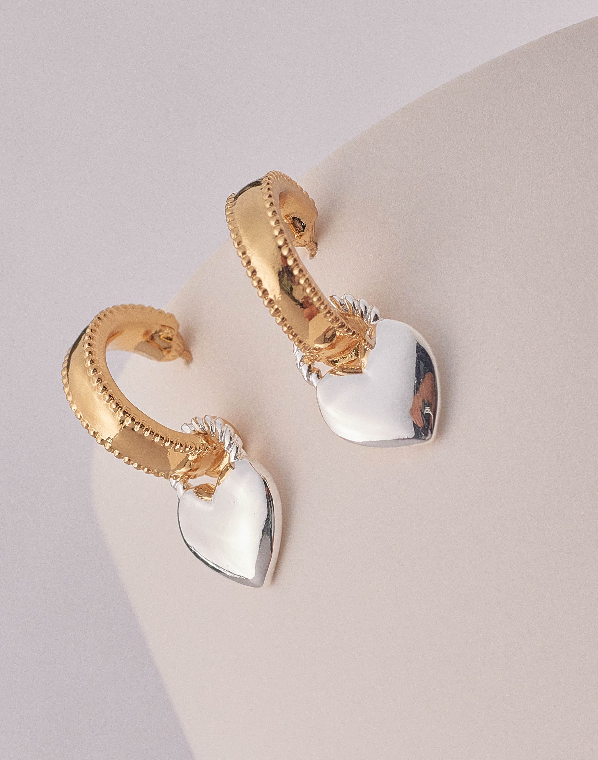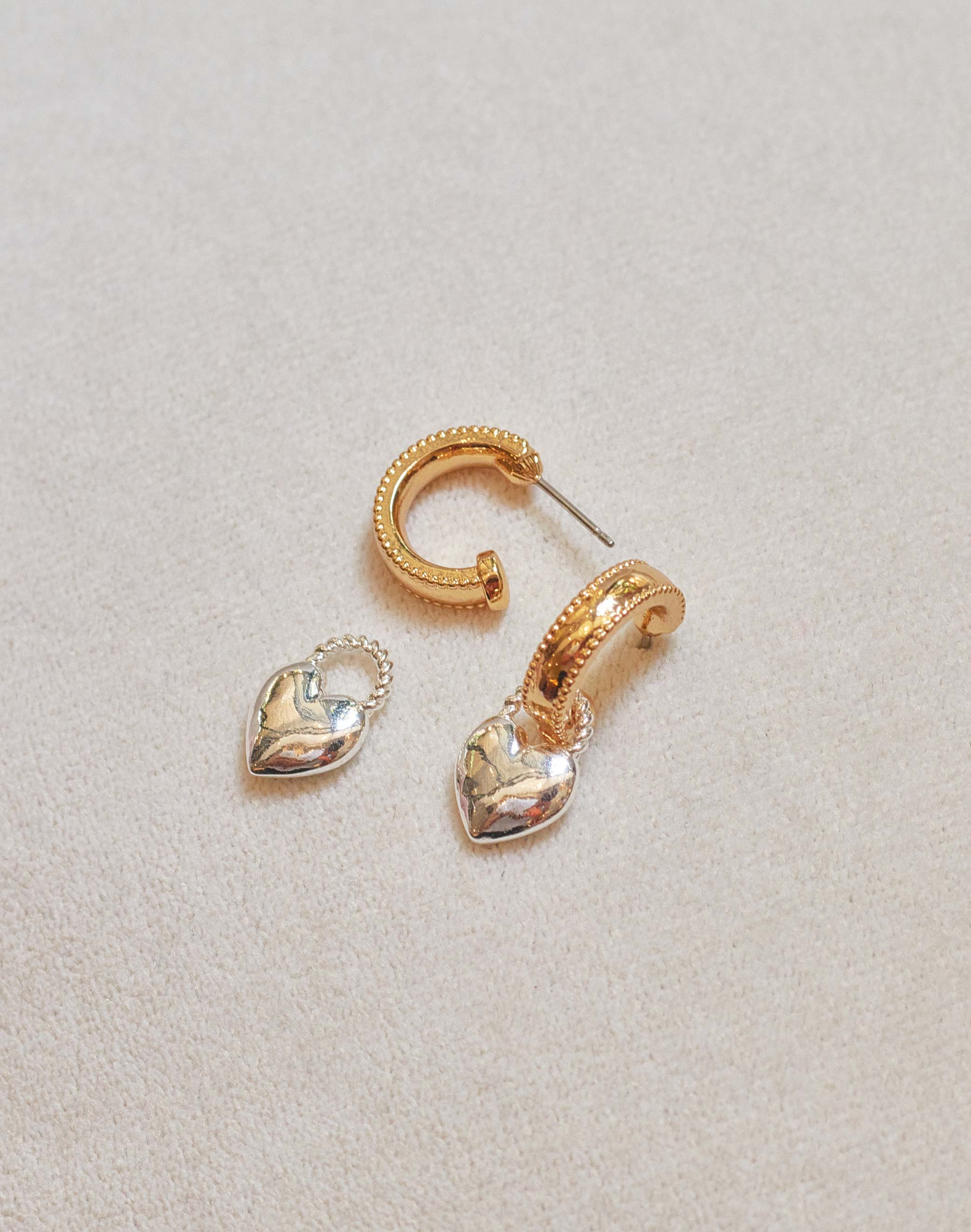 Mini gold hoops with a bold silver heart charm. A must-have to stay trendy with mix & match styling. Wear them according to your mood — the charms are removable.Details:24k...