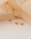 Complete set of necklace and earrings in bright gold with crystals, perfect for a coordinated and luminous look.