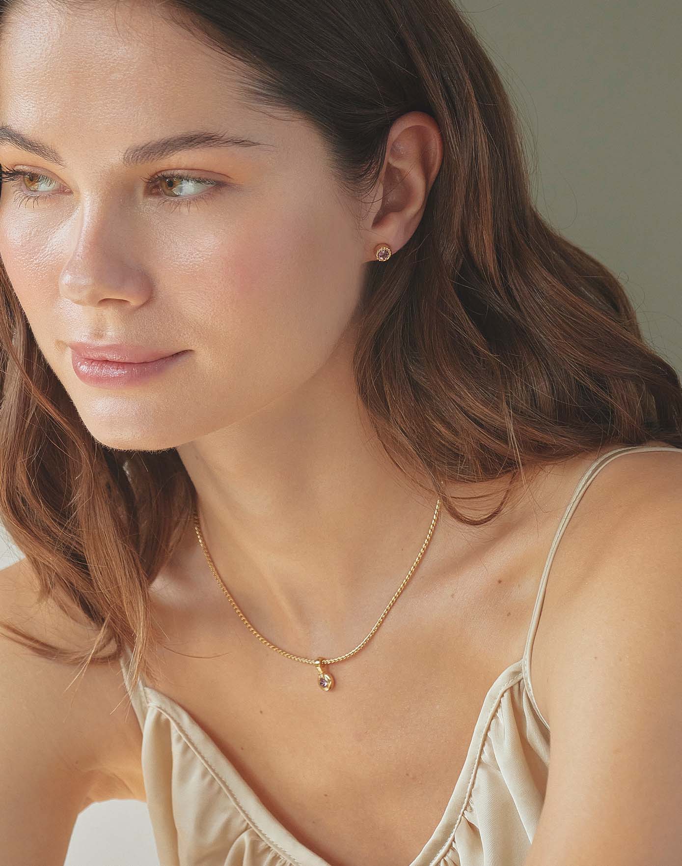 The Calm Necklace is a reminder to embrace mindful pauses. Its lilac crystal symbolizes tranquility, intuition, and emotional balance—perfect for moments of introspection. Details: 24k Gold Plating Main crystal: light...