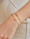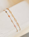 A delicate and very versatile bracelet set with chunky chain links and pendants with stones prepared in-house in Opal, Sapphire, Rose Quartz, and Montana Blue tones.