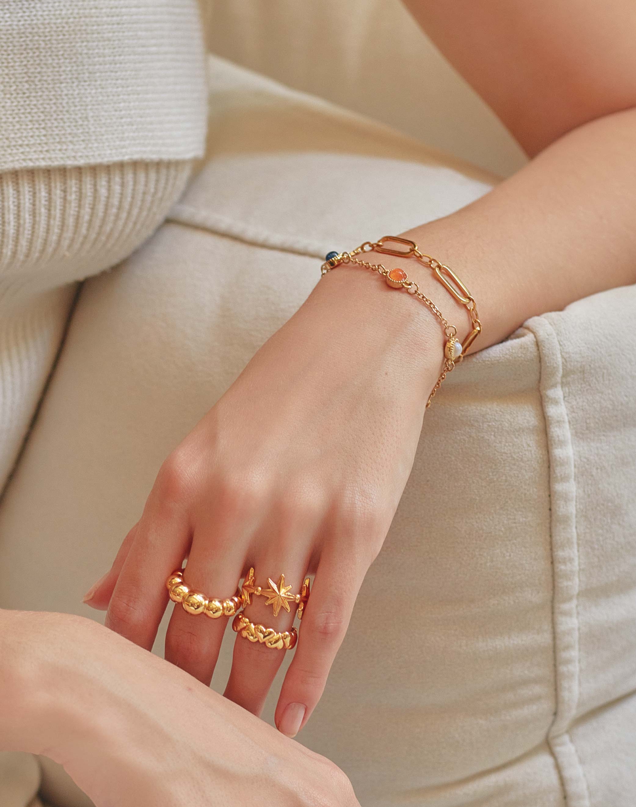 Always remove your jewelry before showering, swimming, or sleeping to protect it from damage. Avoid contact with alcohol-based solutions, water, perfumes, soaps, creams, detergents, or any other harsh chemicals. We also recommend protecting your pieces from impact with hard surfaces or other objects to prevent scratches, chips, or damage.