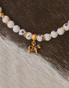Add a unique touch to your look with this cow-print necklace and earring set. The necklace, adorned with stones that highlight the print, features an eye-catching cow-shaped pendant. The earrings perfectly complement the look. Perfect for those looking to express their personality with an original and vibrant accessory.