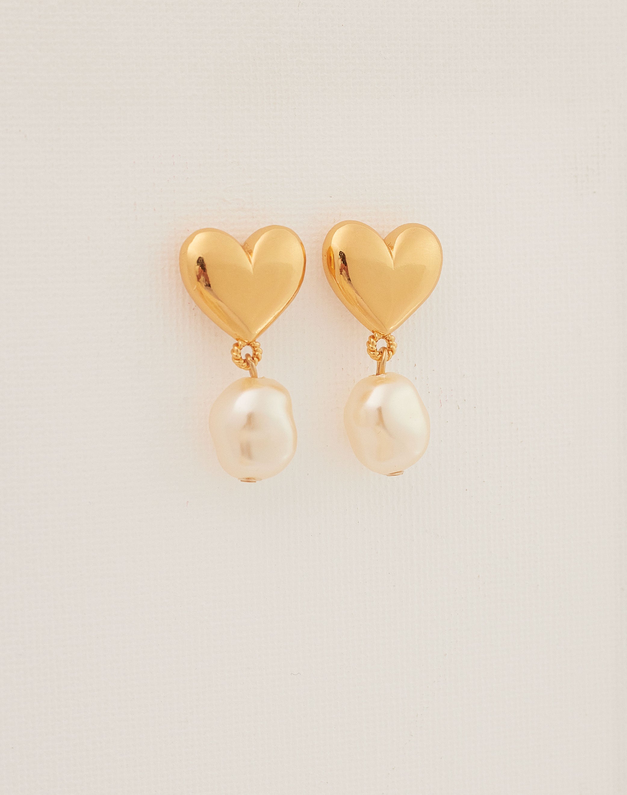 Un clásico renovado. Corazones dorados y perlas plásticas en una silueta romántica que nunca pasa de moda.