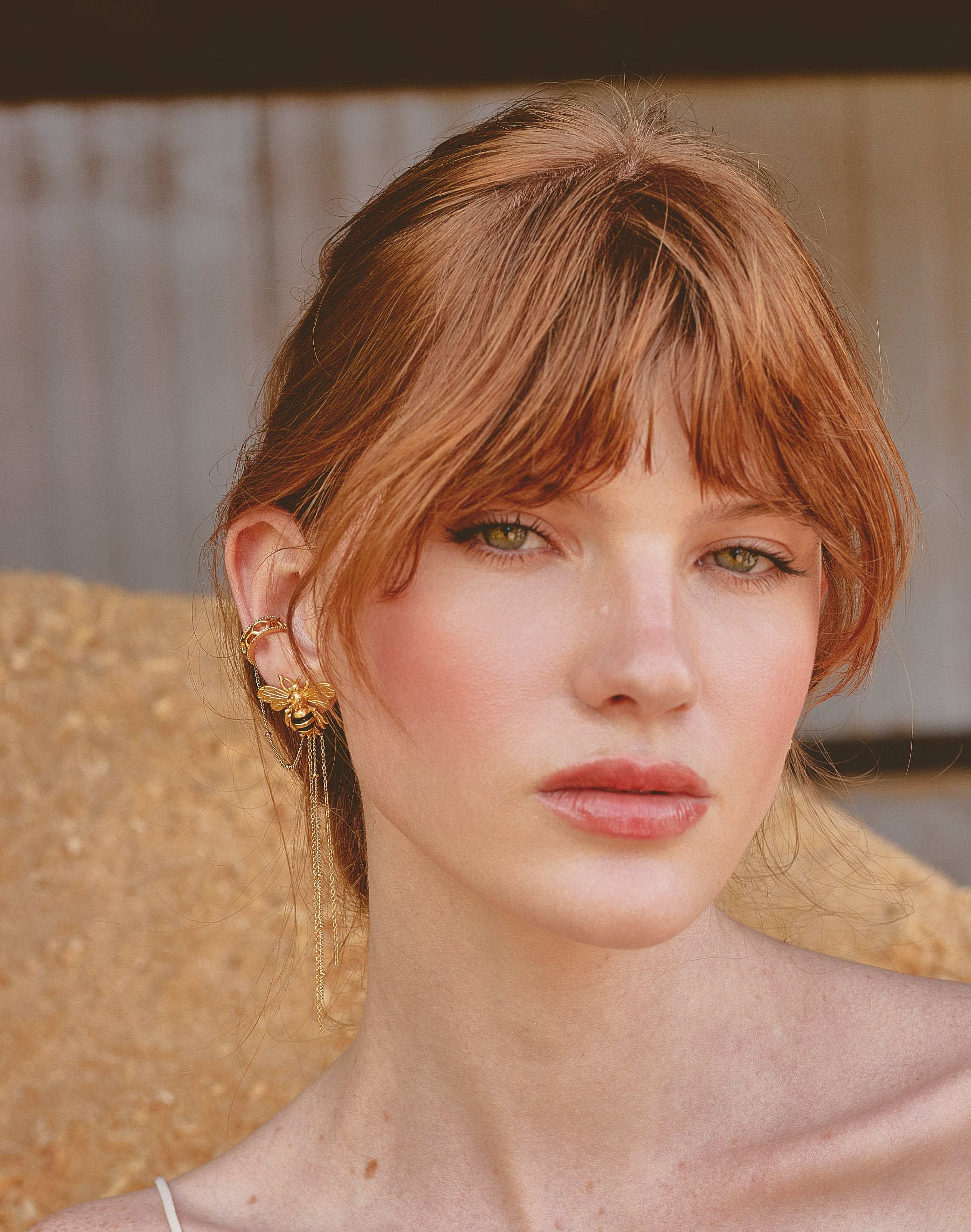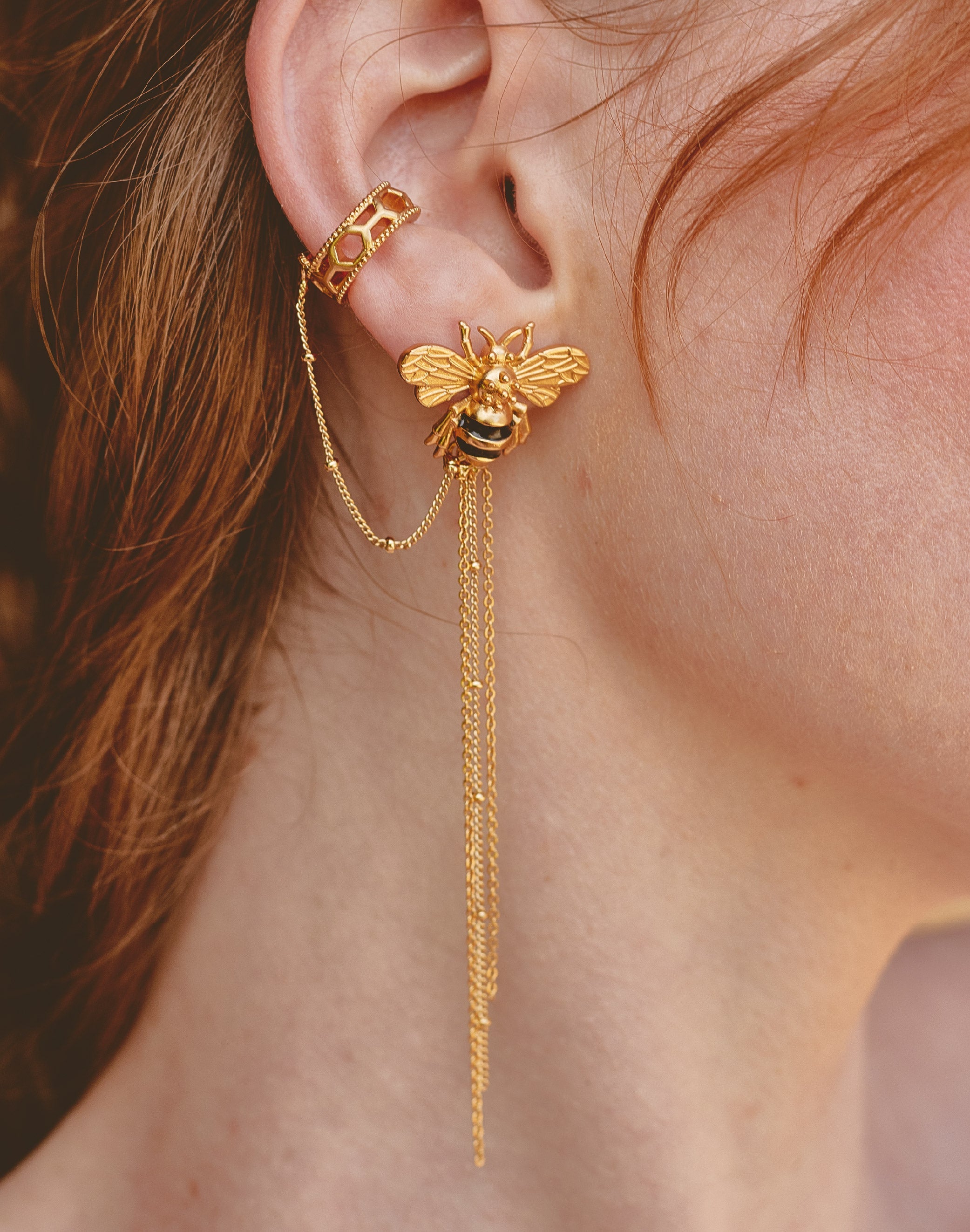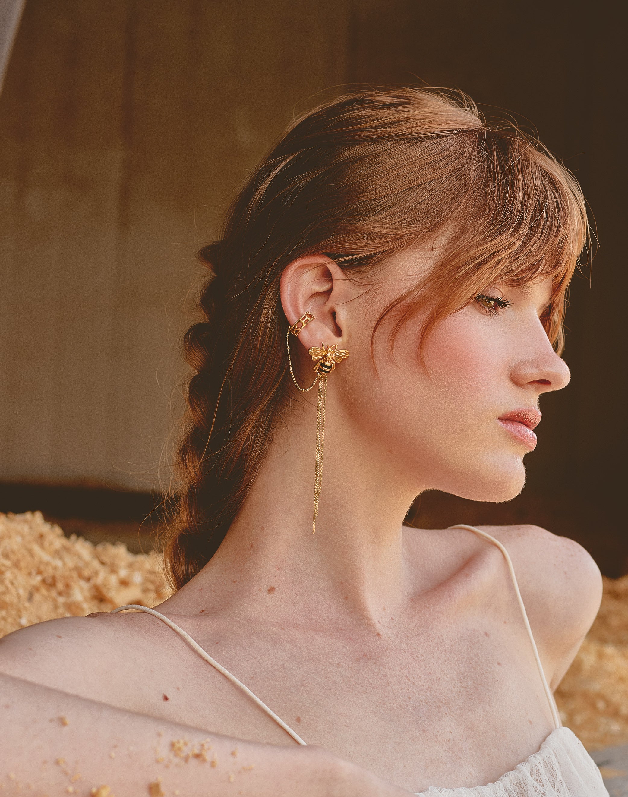 Para las reinas de la colmena. Este set incluye un arete y un earcuff con detalles de abejas, ideal para crear un look audaz y lleno de poder.