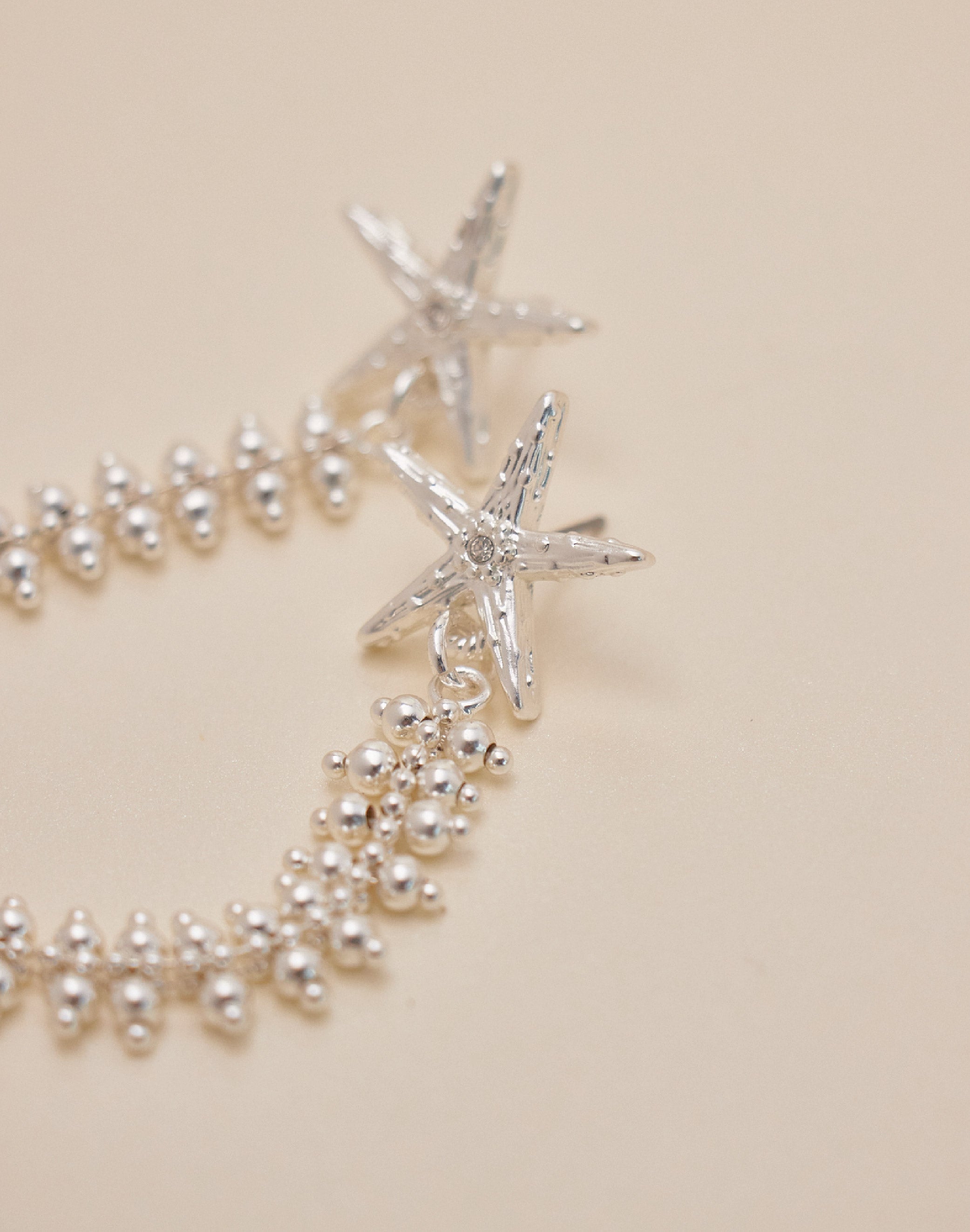 Brilla con estos pendientes de estrella en oro o plata, diseñados con una cadena única que cae suavemente. Perfectos para quienes buscan un toque de magia en su look diario,...