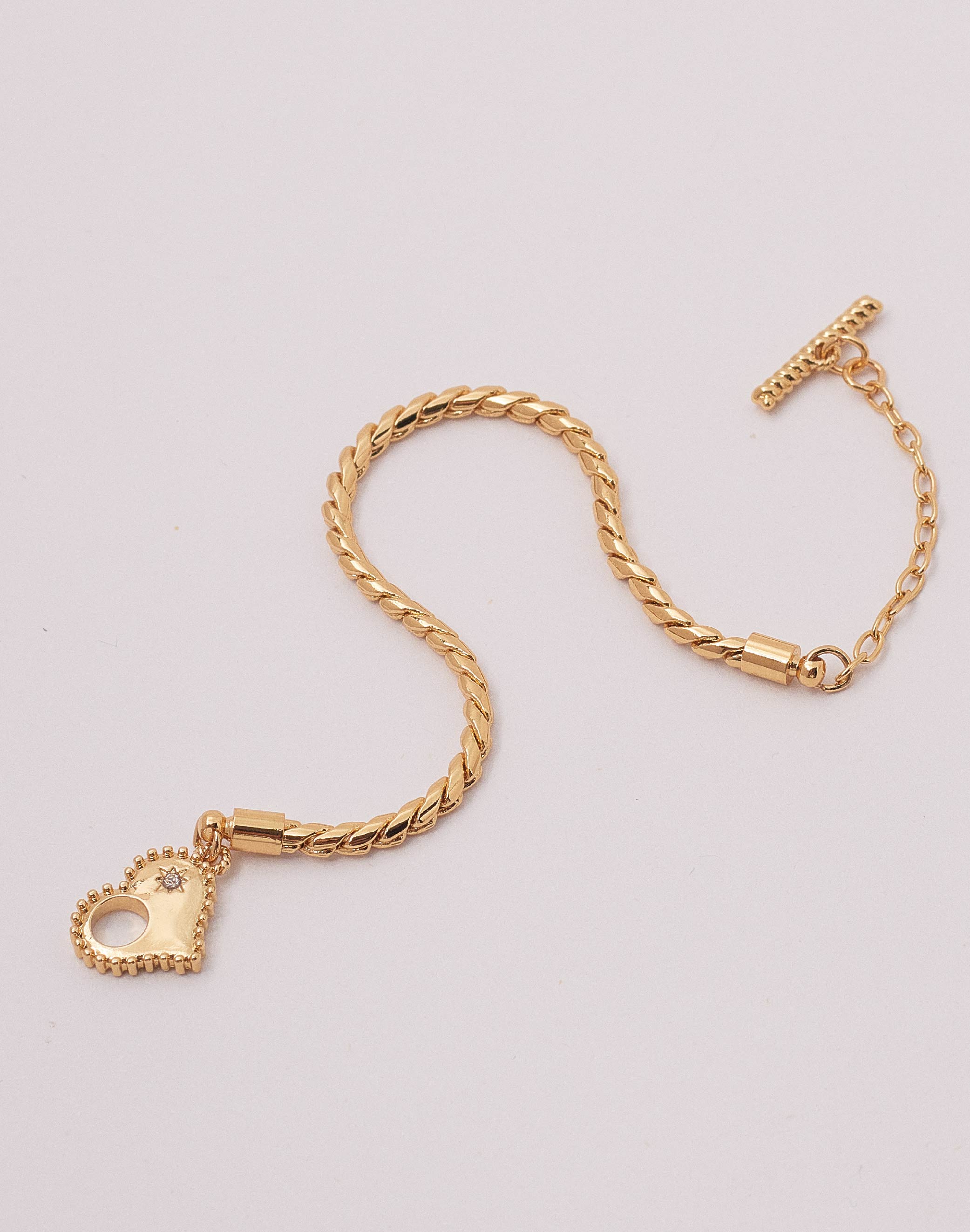 Un brazalete dorado o plateado que estabas esperando para coleccionar todos los charms de la suerte que debes tener cerquita siempre. La pulsera tiene un tejido snake y un broche...