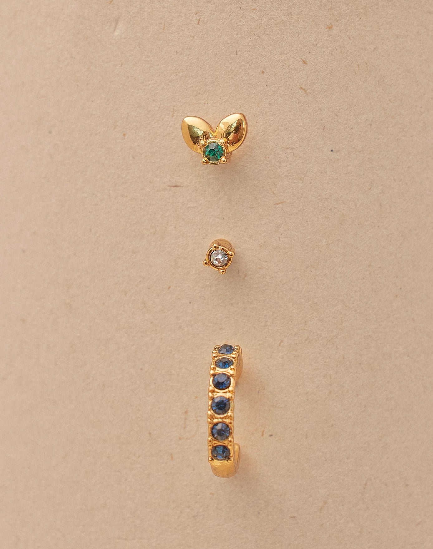 El set Bali reúne tres diseños delicados que combinan cristales y formas orgánicas. Perfectos para crear combinaciones sutiles y sofisticadas que acompañan tu estilo cada día. Especificaciones: Baño en Oro...